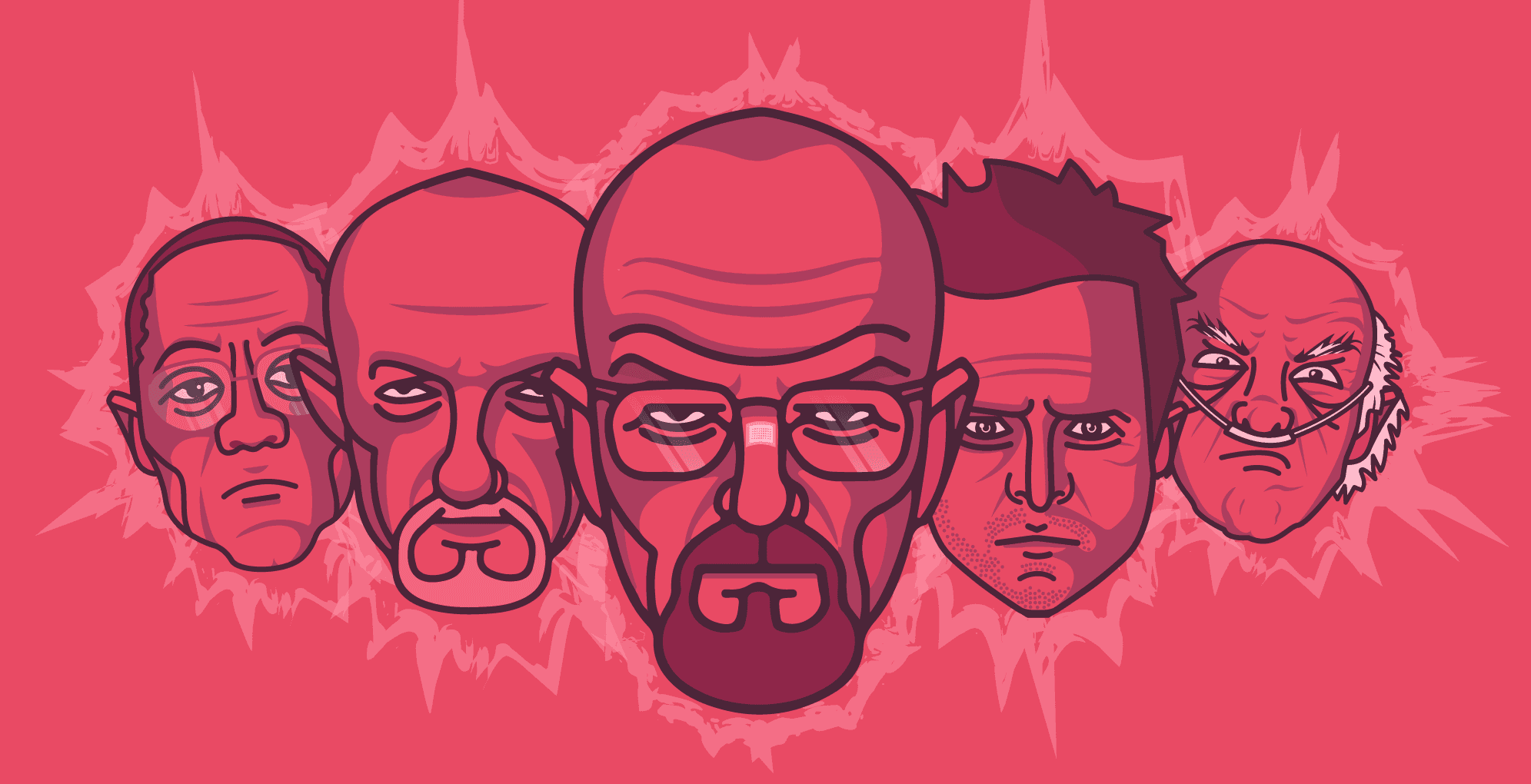 The monotone and flat line-art style perfectly captures the raw essence of these characters. It strips away distractions to focus on their defining traits and memorable moments, staying true to Breaking Bad’s minimalist yet deeply layered storytelling.